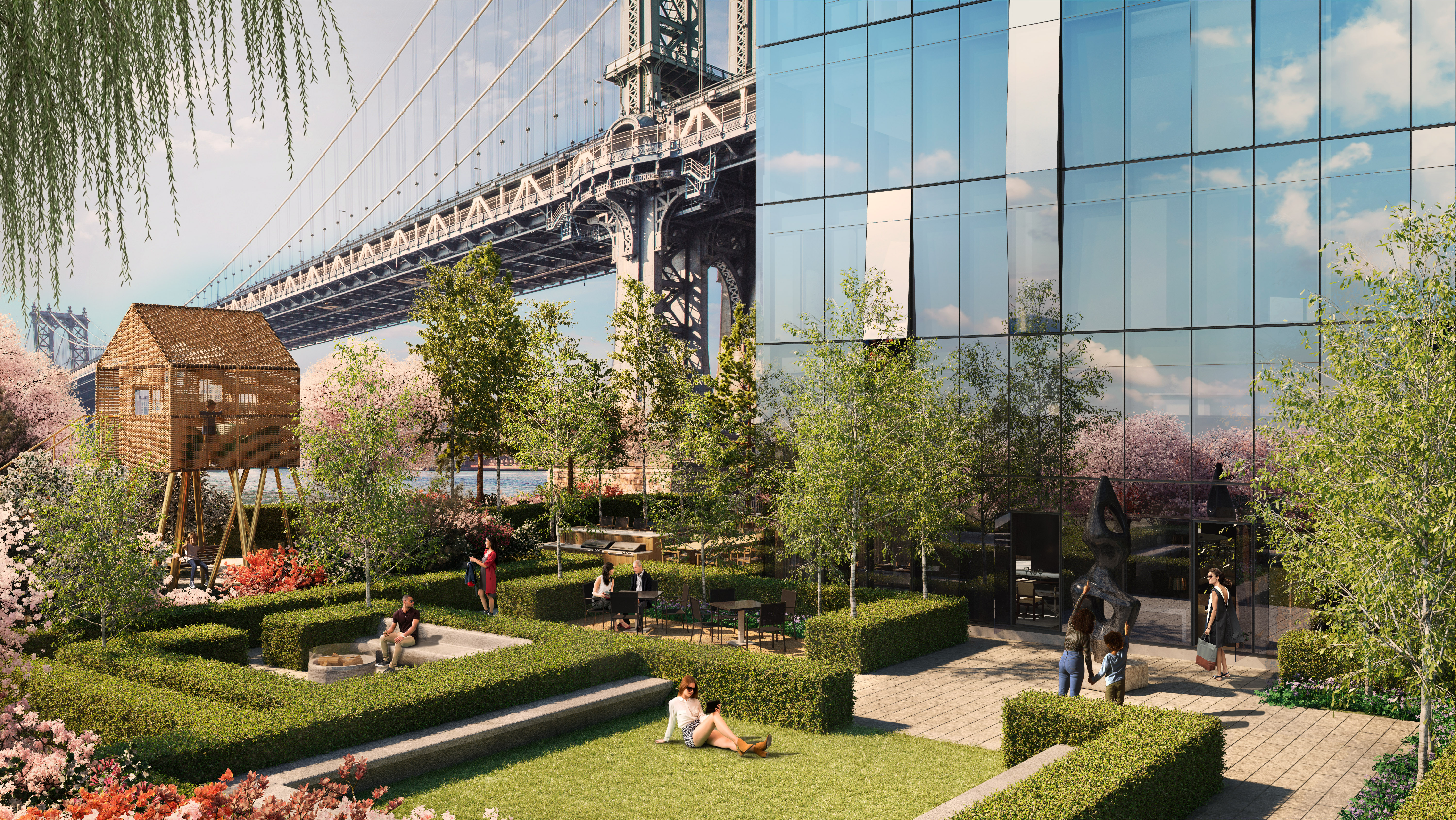 "Live for Free" NO CARRYING COSTS for: -5 Years on One Bedroom Residences -7 Years on Two Bedroom Residences -10 Years on Three Bedroom Residences Incentive ends July 4th. Residence 40A is a 1,163 square foot two bedroom, two bathroom with an open gourmet kitchen and breakfast bar. This spacious residence faces North West and South West, with incredible NY Harbor, Manhattan and Brooklyn Bridge views. Warm, modern interiors are brought to life by the renowned design team at Meyer Davis Studio. This residence features imported stone and custom finishes, premium Miele appliance package, 5" wide stained oak flooring, master bath with custom wood cabinetry, marble tile walls and mosaic floors with radiant heat, under-mount Wetstyle sink with glass vanity top and Dornbracht polished chrome faucets and a washer and dryer. One Manhattan Square is an 80-story, 823-foot modern glass tower condominium located along the East River waterfront on the Lower East Side with unobstructed panoramic water and skyline views, with over 100,000 square feet of every conceivable luxury. Designed by Adamson Associates Architects the Toronto-based firm which served as executive architects on The Shard at London Bridge the 823 foot tower will be a striking addition to the Manhattan skyline. The building is clad in a delicate mix of natural elements and modern accents, including a sleek glass curtain wall that reflects the river below. Other architectural highlights include the use of muntz metal on the podium and entranceway that provides a warm, earthy tone. Residents of One Manhattan Square will have over 100,000 square feet of resort-like amenities designed by Meyer Davis Studio spanning across four floors with rest, relaxation and entertainment in mind. The Club Level features a luxurious spa centered around a tranquil courtyard, Hamam with cold plunge pool, 75' swimming pool, children's wading pool, treatment rooms, hot tub, sauna, full basketball court, two-lane bowling alley, squash court, golf simulator, 70-person movie theater and performance space, cellar bar and lounge, wine tasting room, cigar room, pet spa and laundry and alterations. The Ground Floor features a 24-hour doorman and concierge, double-height grand lobby with two seating areas and fire places, private motor court, package delivery and refrigerated storage, dry cleaning valet, and complimentary bicycle storage. The Third Floor Garden Level is devoted to indoor and outdoor opportunities featuring a culinary lounge and demonstration kitchen, business center, teen game room and indoor children's playroom. The design surrounding One Manhattan Square's 45,000 square foot oasis with lush gardens is by the celebrated design firm West 8 landscape architects, known for their work at The Hills at Governors Island and Miami's Soundscape Gardens. Outdoor amenities feature sumac meander, pike slip courtyard, birch garden, children's playground, social courtyards, relaxation lawns, fire pits, outdoor kitchen and dining, herb garden, adult treehouse, tea pavilion, outdoor ping-pong, putting green, stargazing observatory, and a 93' covered dog run. Finally, the Fitness Level features state-of-the-art weight room, cardio room, four fitness studios, cardio, dance and yoga classes. It all thrives on the Lower East Side. Dotted with fine dining restaurants, trailblazing bars, boutique shops and avant-garde galleries, there's no shortage of entertainment options in the area. The transforming neighborhood is buzzing with energy and is within proximity of a number of landmarks including the South Street Seaport, Manhattan Bridge and the East River Esplanade. One Manhattan Square was designed to appeal to those that want it all iconic views, lush gardens, gorgeous homes, anticipated 20-year tax abatement and an over the top package of unprecedented amenities. Immediate occupancy. The complete offering terms are in an offering plan from Sponsor file No. CD15-0185, CPS Fee Company LLC, 805 Third Avenue, Seventh Floor, New York, NY 10022. Equal Housing Opportunity.