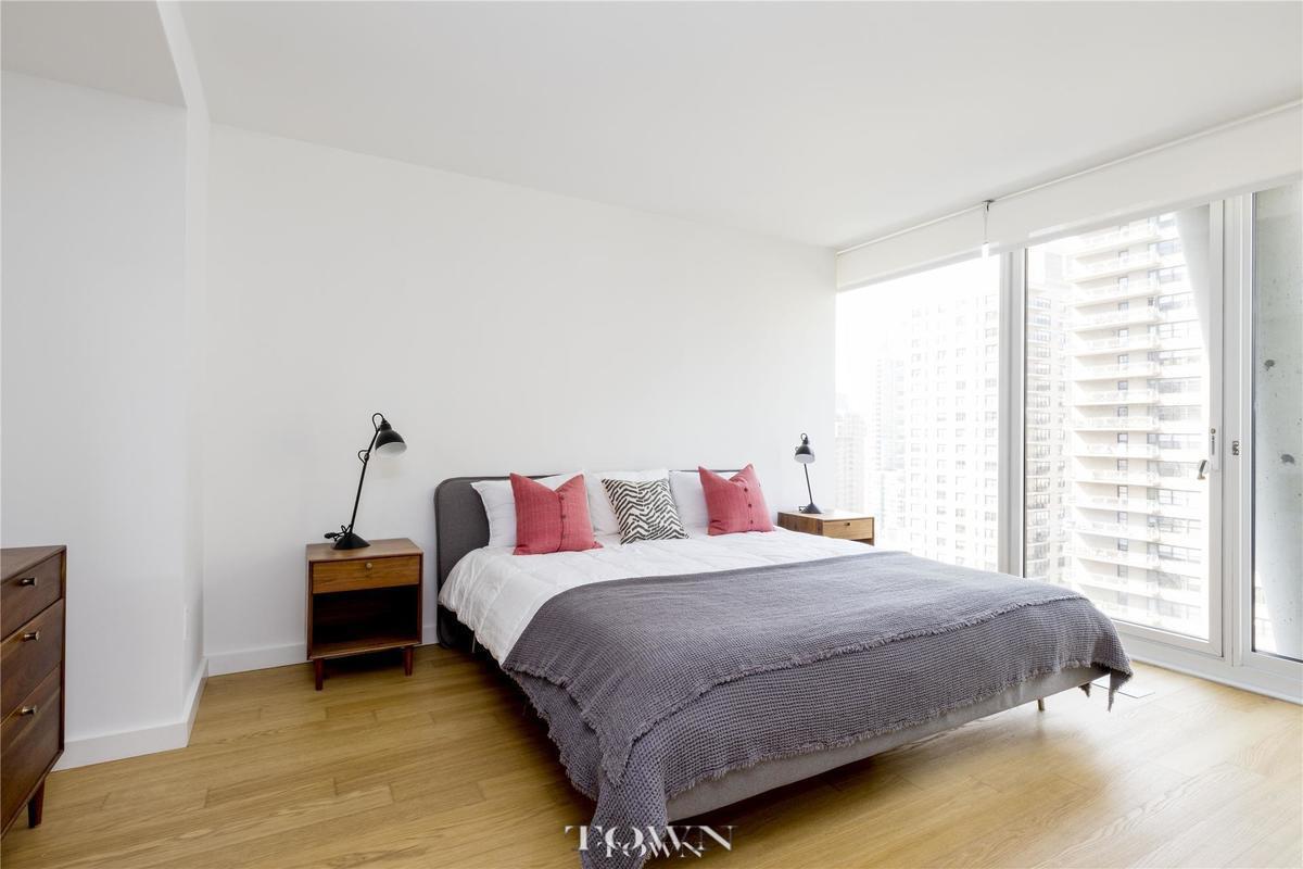 All three bedrooms are oversized and feature walls of windows and roomy closets, while the spa-like white-on-white bathrooms are lined in gleaming subway tile, oversized bathtubs and modern fixtures. In the serene master suite, you'll find ample room for a king-size bed plus two large custom closets.