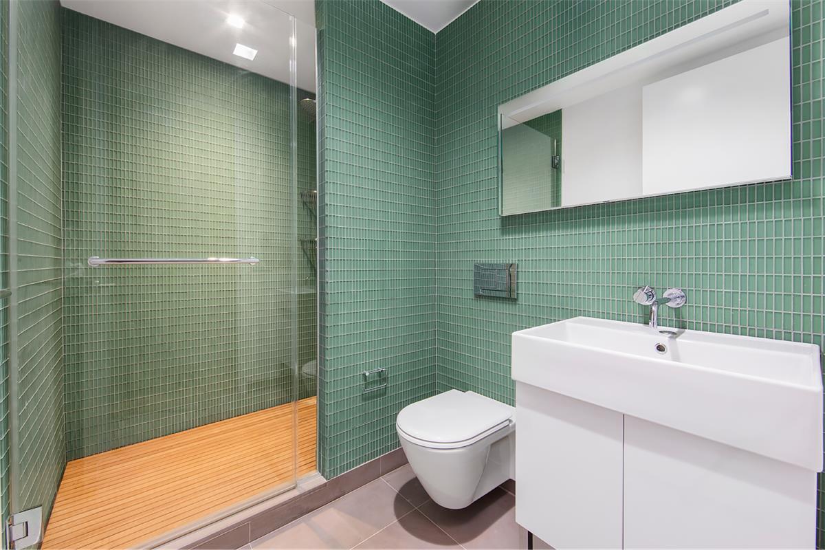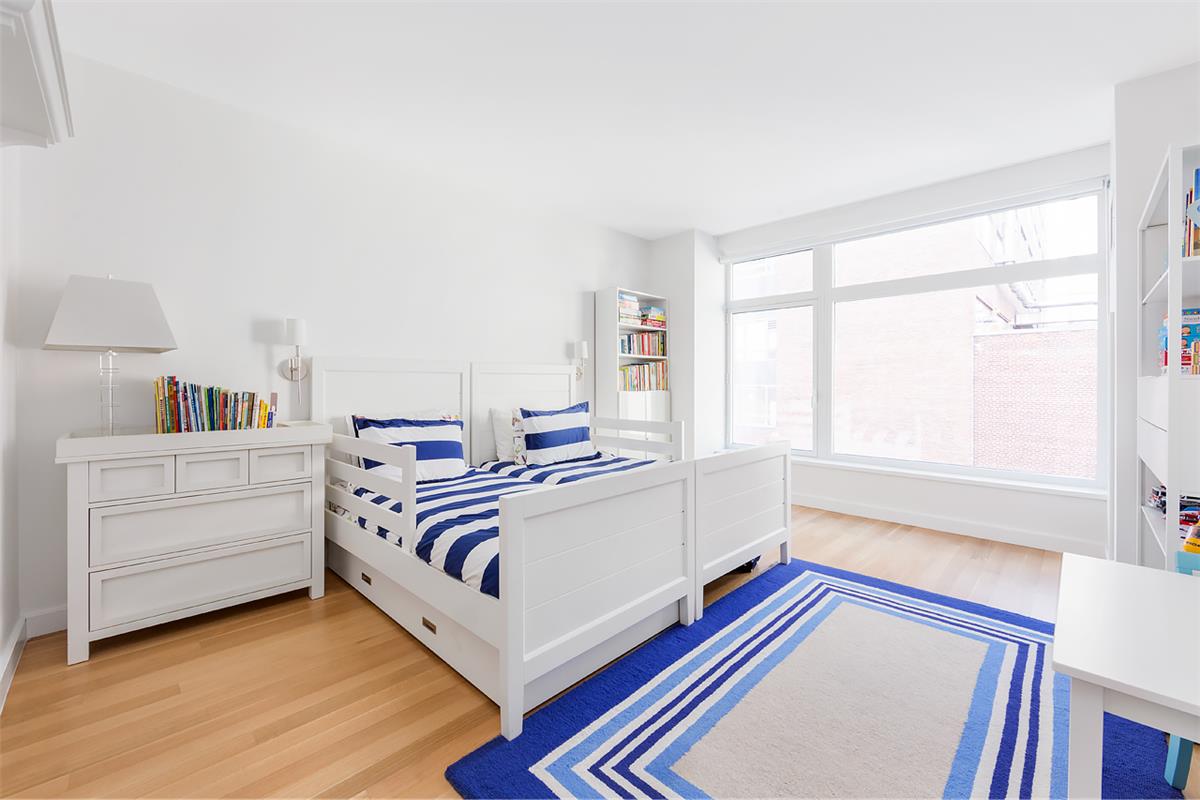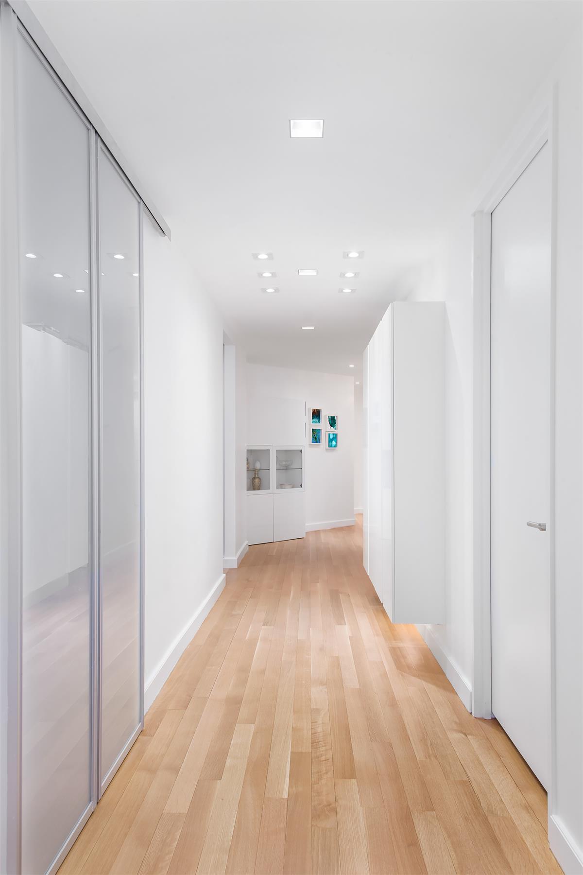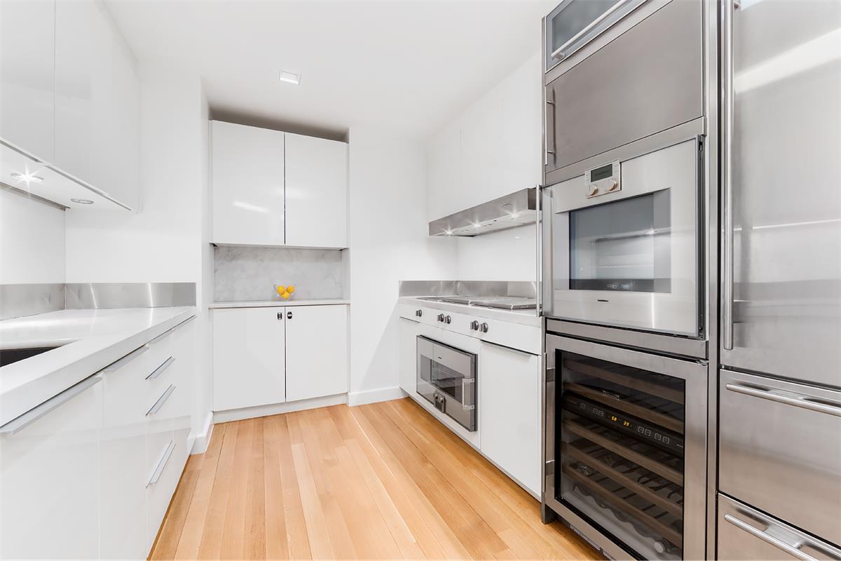 The kitchen contains top of the line appliances including Sub-Zero refrigerator and wine cooler, Gaggenau dishwasher, and Poggenpohl cabinetry. The home is outfitted with electric shades in the living room, two Bosch washers and dryers and ample closet space throughout.