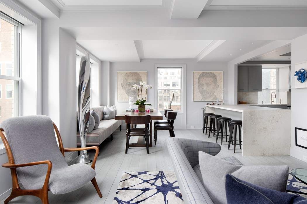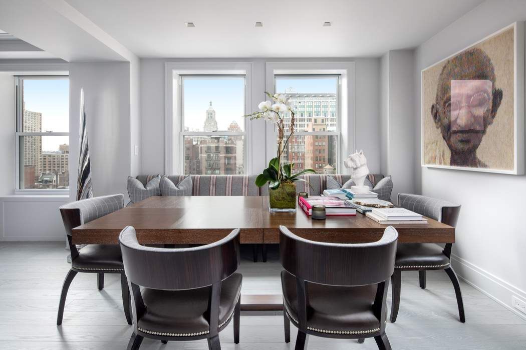 All Open Houses are by Appointment Only BIG VIEWS & BEAUTIFUL LIGHT – PRISTINE RENOVATION Luxury Living on Gramercy Park Perched on the 15th floor of Gramercy Park's most prestigious cooperative sits this newly renovated seven room classic. Residence 15A is an astonishing home that measures approximately 2,000 square feet +/- and features wide open exposures to the South and West with all major rooms overlooking Gramercy Park. AD100 designer Ken Alpert reimagined this modern day home and perfected every inch while maintaining the integrity of its prewar elements. A high floor A-Line, this 3-bedroom, 2.5-bath residence offers a perfectly crafted floor plan with expansive living, sublime views, and endless wall-space for art. The magnificence of this home is apparent from the moment you arrive. Upon entering you are greeted by an impeccable renovation and the dazzling New York City skyline. The comfortable living room showcases a wood-burning fireplace surrounded by a custom crafted Chesneys fireplace mantle. In the style of loft living, the living and dining room seamlessly connect. The southwest corner dining area is large enough to comfortably seat eight. Adjacent to the dining area sits an ultra high-end windowed kitchen with a large breakfast bar that opens into the dining area. The kitchen is equipped for a true chef with Dekton countertops, 40" SubZero refrigerator, two separate freezer drawers, two Miele dishwashers, a double Wolf oven, a hood that vents out, and endless storage. The private quarters are tucked away down a separate corridor. Wake up in the primary suite to bucolic Gramercy Park views and wide open southern exposures. This serene suite is closed off by a hidden door and features two large closets, one of which includes a window. The sumptuous en-suite bath features a large rainfall shower and is outfitted with floor-to-ceiling mosaic marble tile. The second bedroom overlooks an east-facing courtyard and features a large closet and en-suite bath with a large soaking tub and custom vanity. A third bedroom with a Murphy bed is situated adjacent to the living room. Just off the foyer is a beautifully appointed powder room for guests and a large windowed staff room which also has a Murphy bed. The beauty is in the details of this impeccable home. Modern luxuries include central air conditioning, recessed lighting, motorized shades in every room, rimless lighting, smart home technology, surround sound speakers, a vented washer/dryer, hidden storage throughout, and treated cerused solid oak floors imbued with grey tones. Designed by Emory Roth, 60 Gramercy Park North has been a fashionable address since 1928 with its coveted keys to Gramercy Park, impeccable 24-hour doorman services, around the clock porters, and live in super. Amenities include a majestic lobby, central courtyard, laundry room, storage, and state-of-the-art fitness center. Located near the Flatiron District where famous chefs, fabulous restaurants and high-end shopping are all within close proximity, this home is truly a rare find. -Available on or about June 1st, 2023 -One to two years -Dogs are allowed, 50LB or less