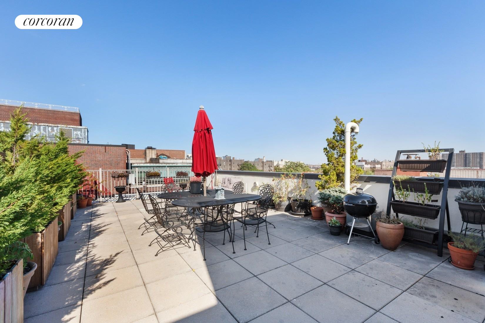 Located in the old Bradhurst Carriage House, the building features an elevator, which will take you up to the beautiful common roof deck. The furnished roof deck and lounge have an outdoor grill and stunning bloomage in the spring.