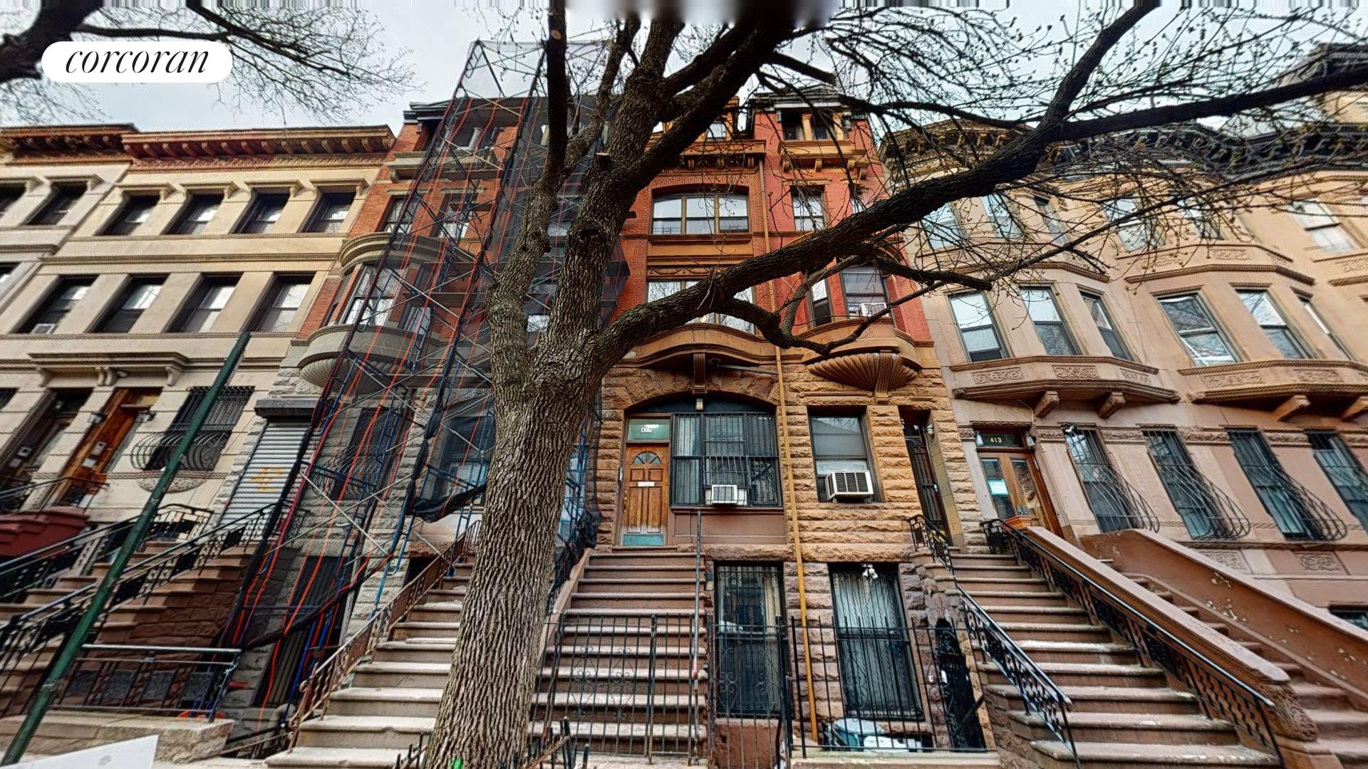 This Rowhouse is a legal 3 family that was built in 1889 by architect John P. Leo. This Queen Anne style home stands 5 stories tall plus a full basement and is made of brick and stone. The buildings current configuration is the owners duplex on   the garden level and parlor floor. Next level is a one bedroom floor through apartment. The 4th and 5th floor is a two bedroom duplex with hardwood floors, exposed brick, and high ceilings. Great for first time home buyers looking for rental income or seasoned   investors looking for additional cash flow. All apartments are free market Class A units. The owners duplex is vacant and the upper rental units are currently occupied. Please note this photo are virtually staged.
