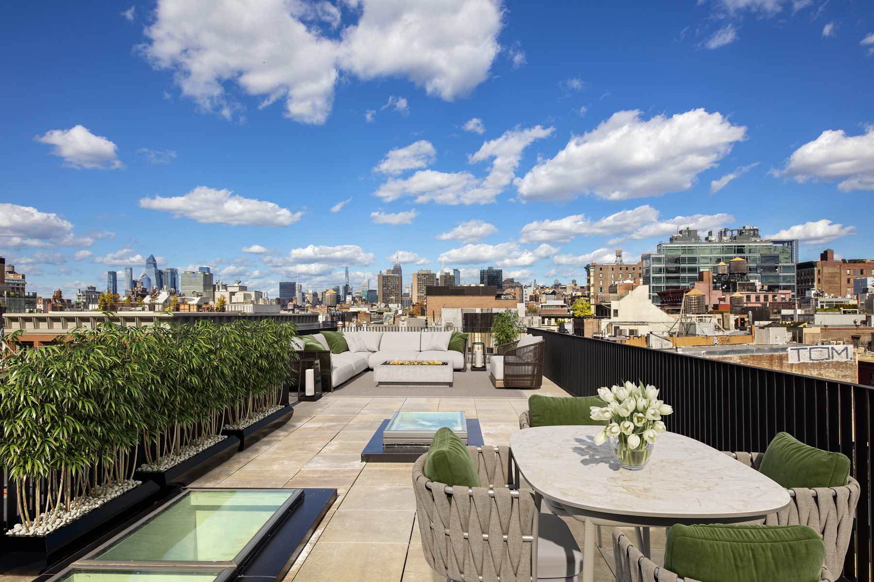 Ascend the atrium staircase to explore the home's crowning glory, a massive rooftop terrace made for entertaining and lounging among the iconic sights of the city, including views of the Empire State Building, 56 Leonard and so much more.