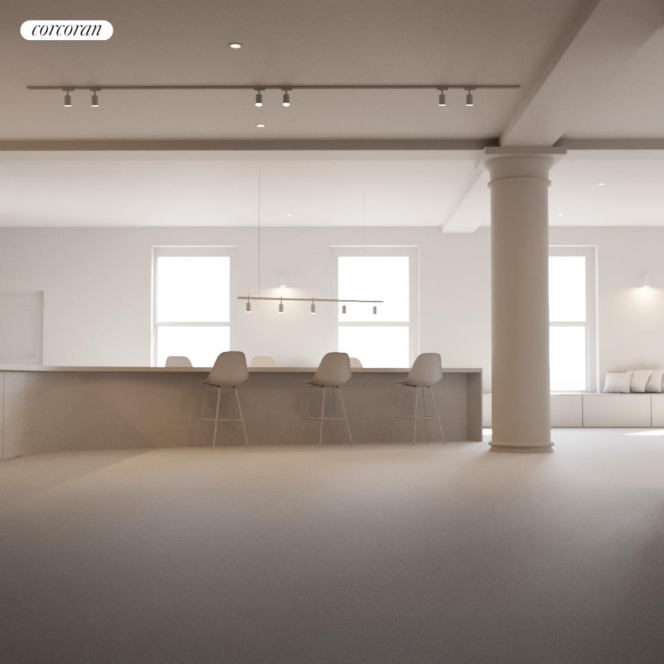 - 34 oversized windows flood the loft with natural light.