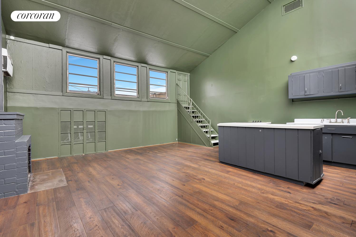 The top floor houses a renovated studio with soaring ceilings, a wall of windows, dramatic skylight and a roof deck. This floor can easily serve as a guest floor with a flexible layout that includes a full bathroom and kitchenette.