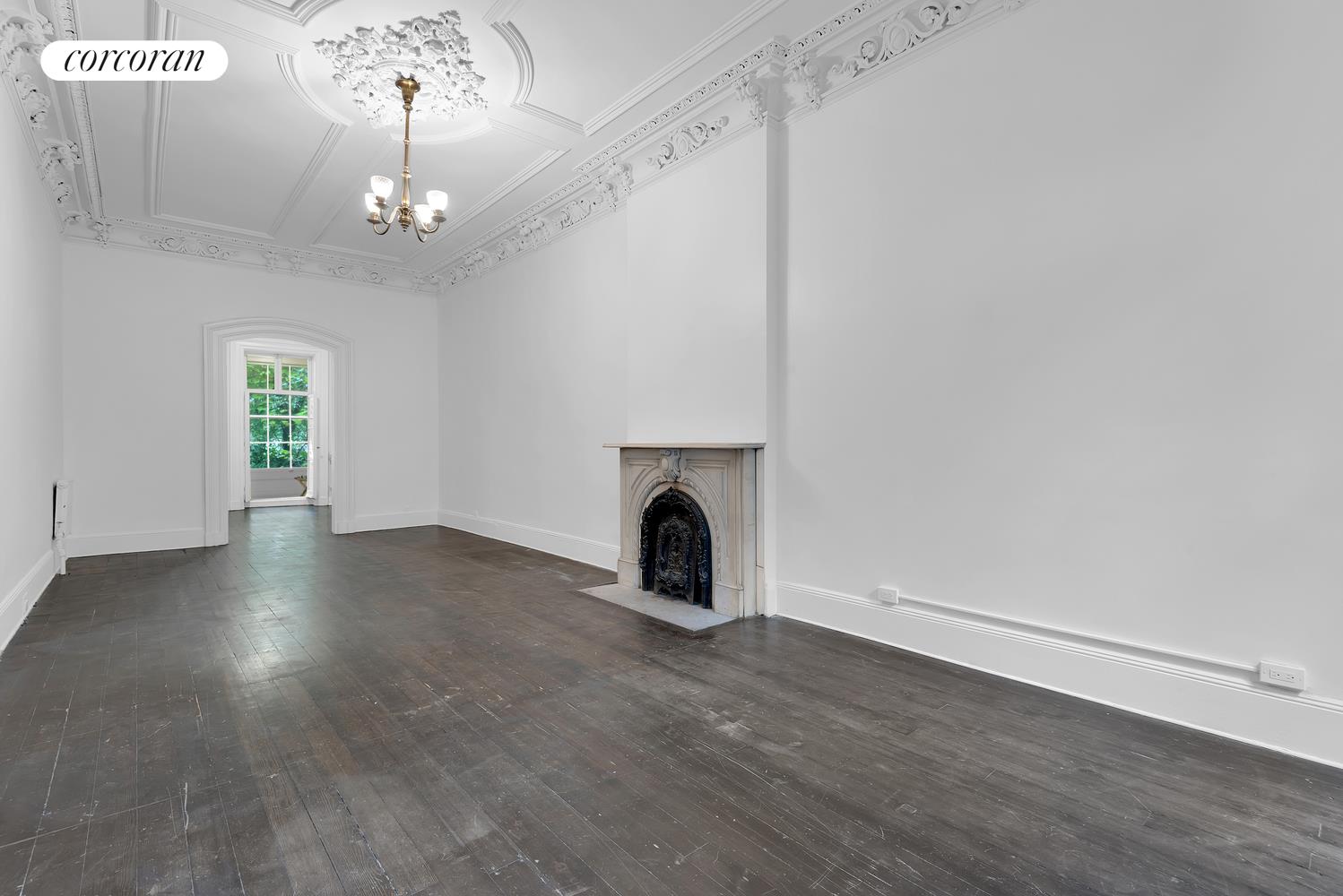Grand in scale and flexible in layout, the magnificent home has five bedrooms, five bathrooms, seven working fireplaces, and a beautiful, 36? private garden. The elegance of the parlor floor is immediately imagined with its 31-foot living room and 12? soaring ceilings. Original old-world details include the original staircase, ornate ceiling moldings, wide plank oak floors, and a marble fireplace mantle. Additionally, this floor presents a formal dining room and renovated kitchen with sunroom and full bath.